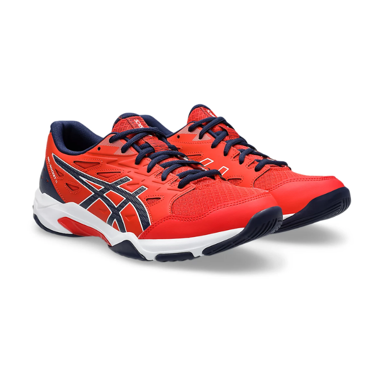 The ASICS GEL-ROCKET 11 is a versatile sports shoe designed for indoor courts and active lifestyles. It features a durable synthetic upper with mesh panels for breathability and a secure fit. The signature GEL® cushioning in the forefoot and rearfoot absorbs shock for comfortable movement. Its AHAR® rubber outsole provides excellent traction, making it ideal for volleyball, badminton, or casual sports activities.